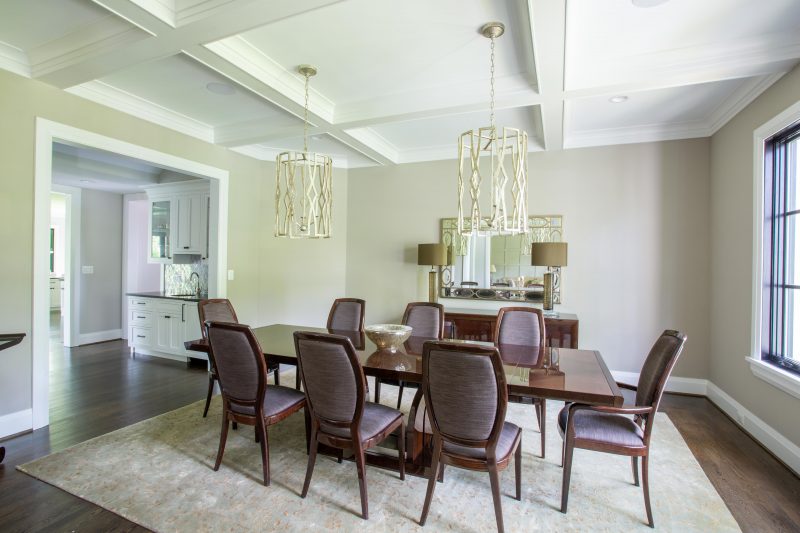 The design of the floor plan created a barreled ceiling central gallery with a grand side staircase with a large bank of windows. The central foyer enters into a central hall before entering into the family room. A side porch is entered from the family room or main stair hall allowing easy access to the rear yard. The main living spaces connect visually to the yard through banks of windows from the family room and nook.